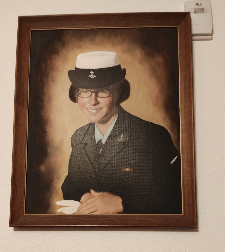Yes, I was married at the time, and yes, I was about to have my first baby, but finding myself out of the Navy was hard. I fought against it for almost nine months. I sent one chit after another with reasons why I wanted to stay in and why it would be beneficial. My CO sent me to other W.A.V.E. officers who had children to try to persuade me about the benefits of getting out of the Navy. I never saw those as benefits. However, it was my CO’s decision and I found myself with a shortened career. It is my only regret to this day.
