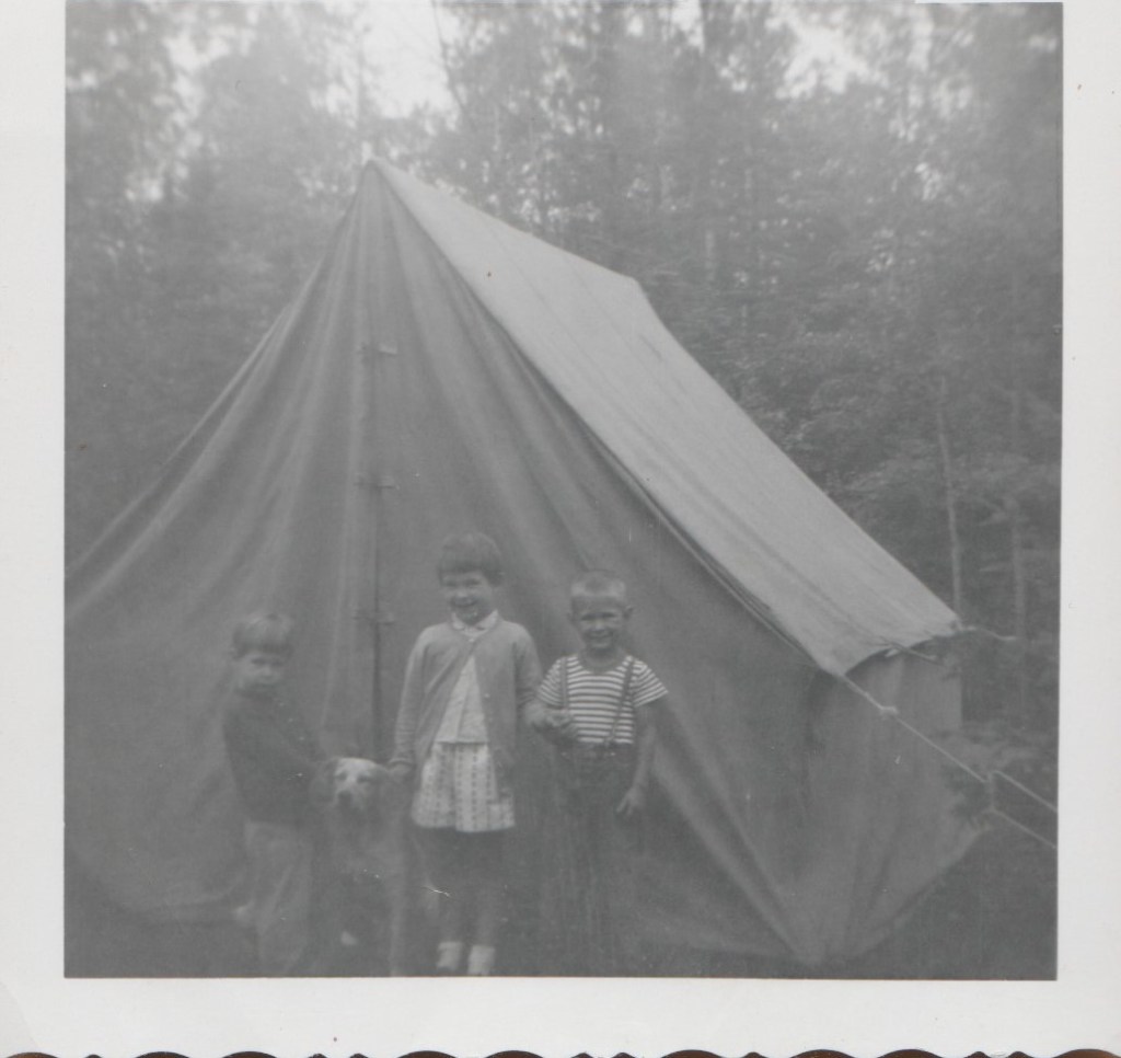 Here’s me, the one in the middle, the oldest with my brother, sister, and Fritzie. I’m not wearing glasses, so I was around five years old in that picture. And that is the tent my parents had the entire time I was growing up. I camped from infant to 16 and hated it.